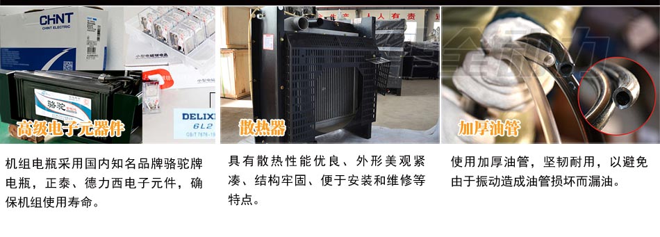 機(jī)組電瓶采用國內(nèi)知名品牌駱駝牌電瓶,正泰、德力西電子元件,確保機(jī)組使用壽命。